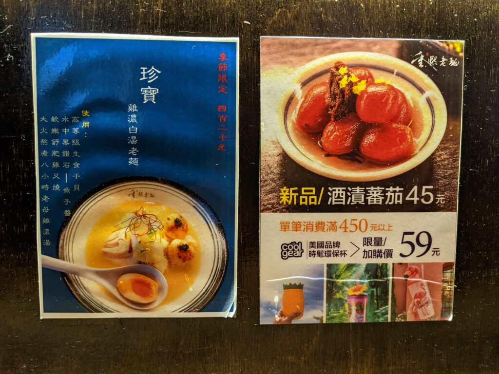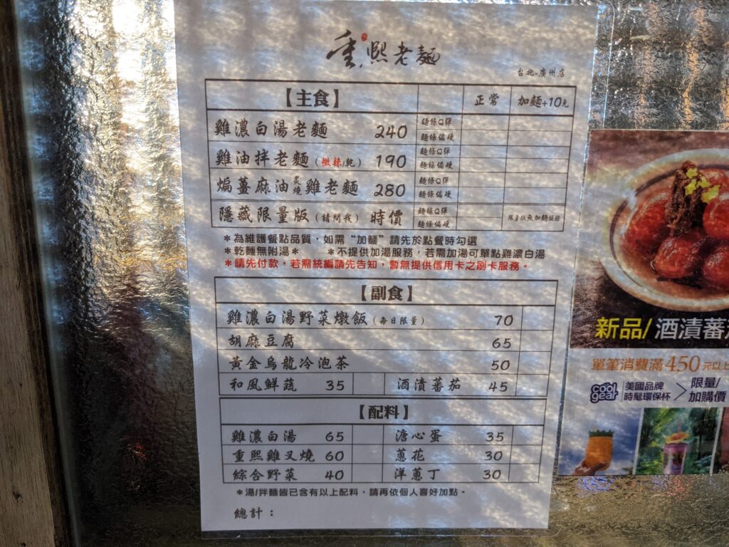 菜單蠻簡單的,就是乾麵或湯麵選一個,再來就就是會有隱藏限量版,不過寫時價不敢問是什麼XD,所以點了雞濃白湯老麵$240
