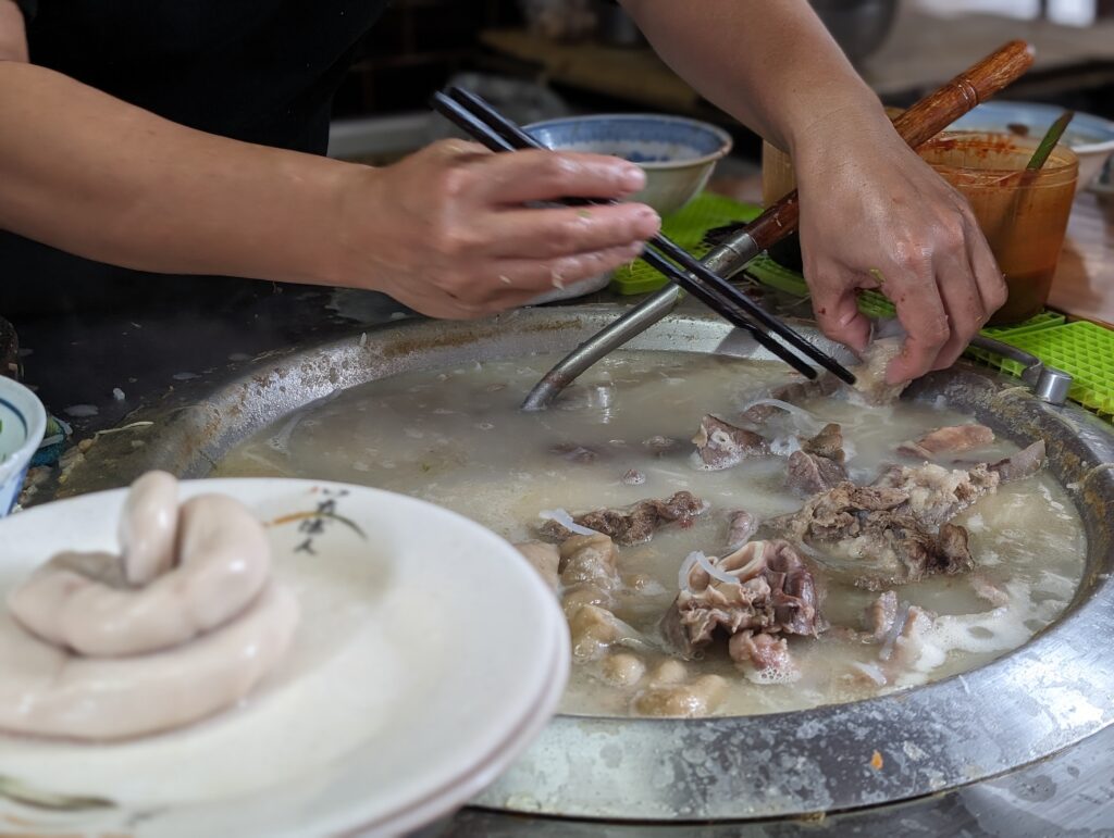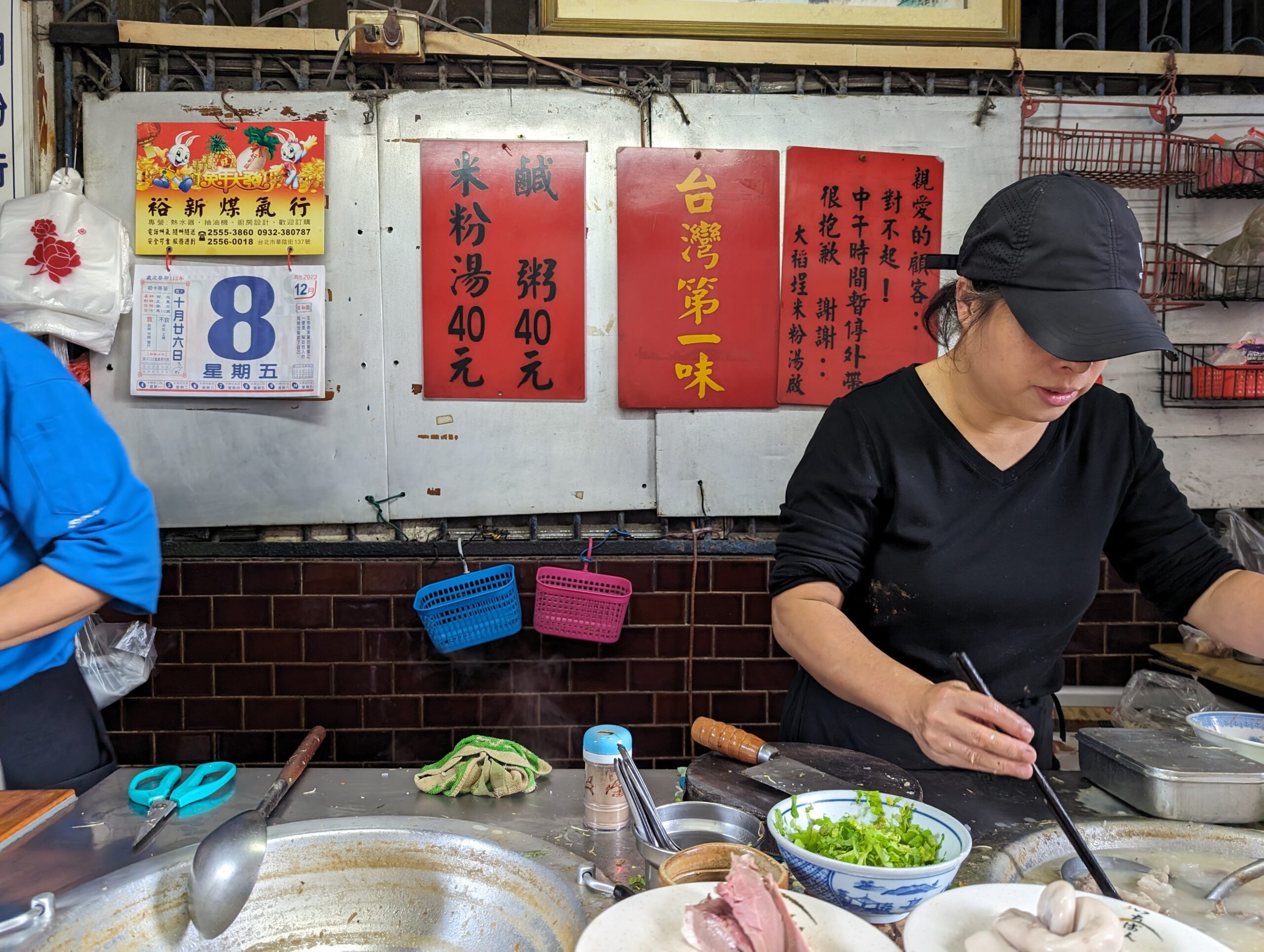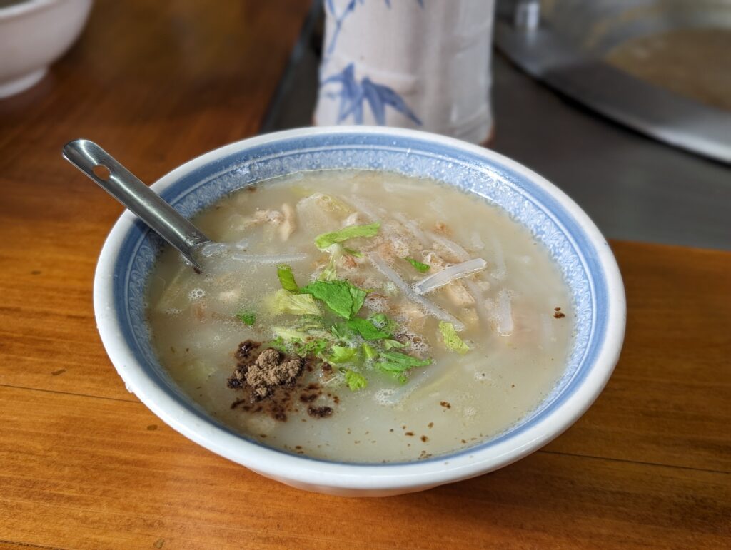 沒過多久就輪到我們了,這次座位是在前台,有點像是居酒屋的感覺,老闆娘非常熱情,也介紹了很多餐點,不過我們是12點才來,鹹粥已經沒了,所以先叫了綜合米粉湯以及清米粉湯。