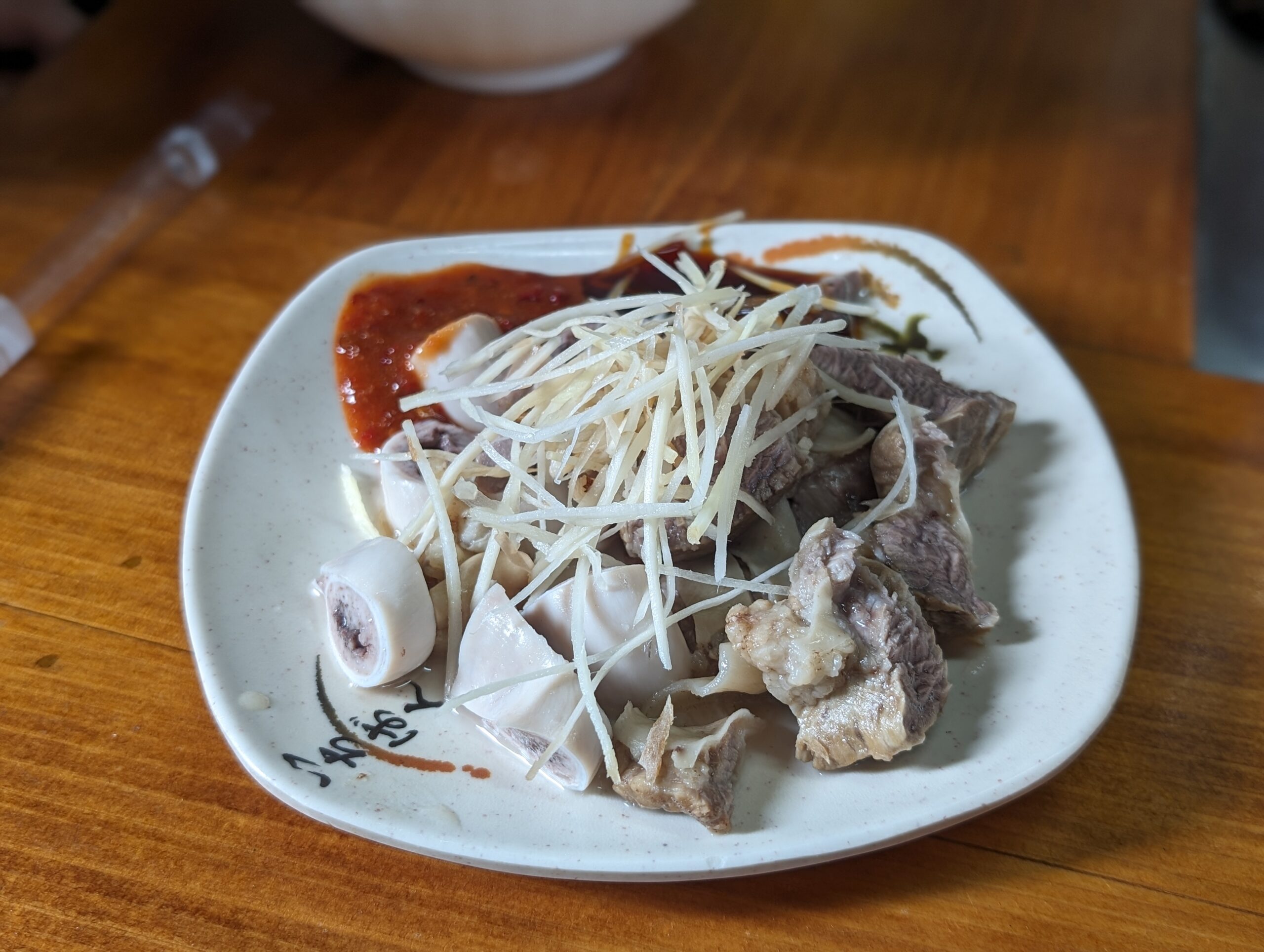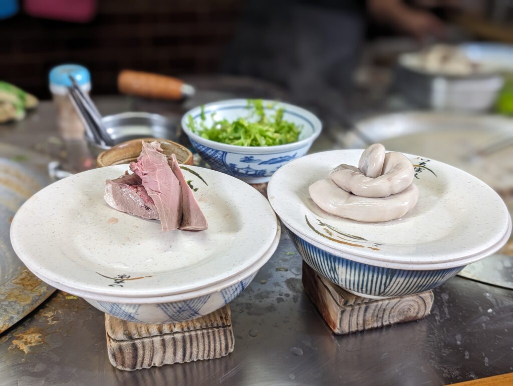 接下來就可以叫小菜了,但因為太晚來了,有很多隱藏部位跟小菜都賣完了,但還是跟著推薦點了生腸,豬心,肝連肉,骨仔肉