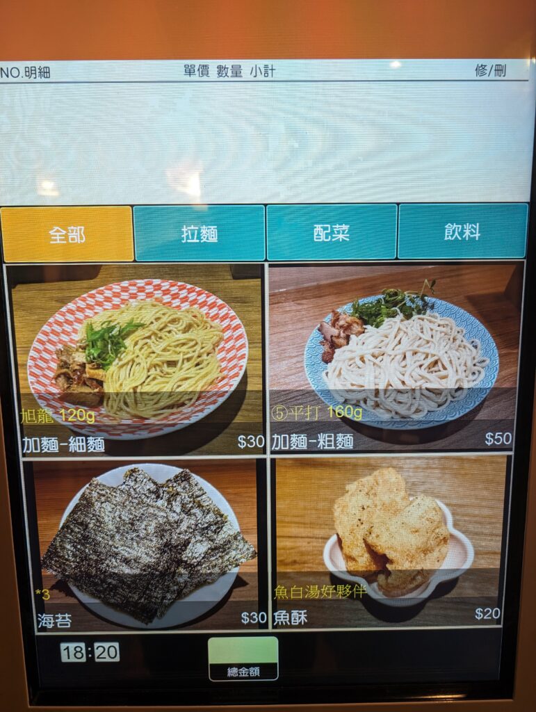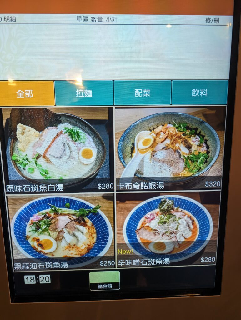 目前只有四種拉麵,不會選擇困難XD,不能客製化湯頭鹹度或麵的硬軟度,但我覺得預設也很好吃不用擔心~