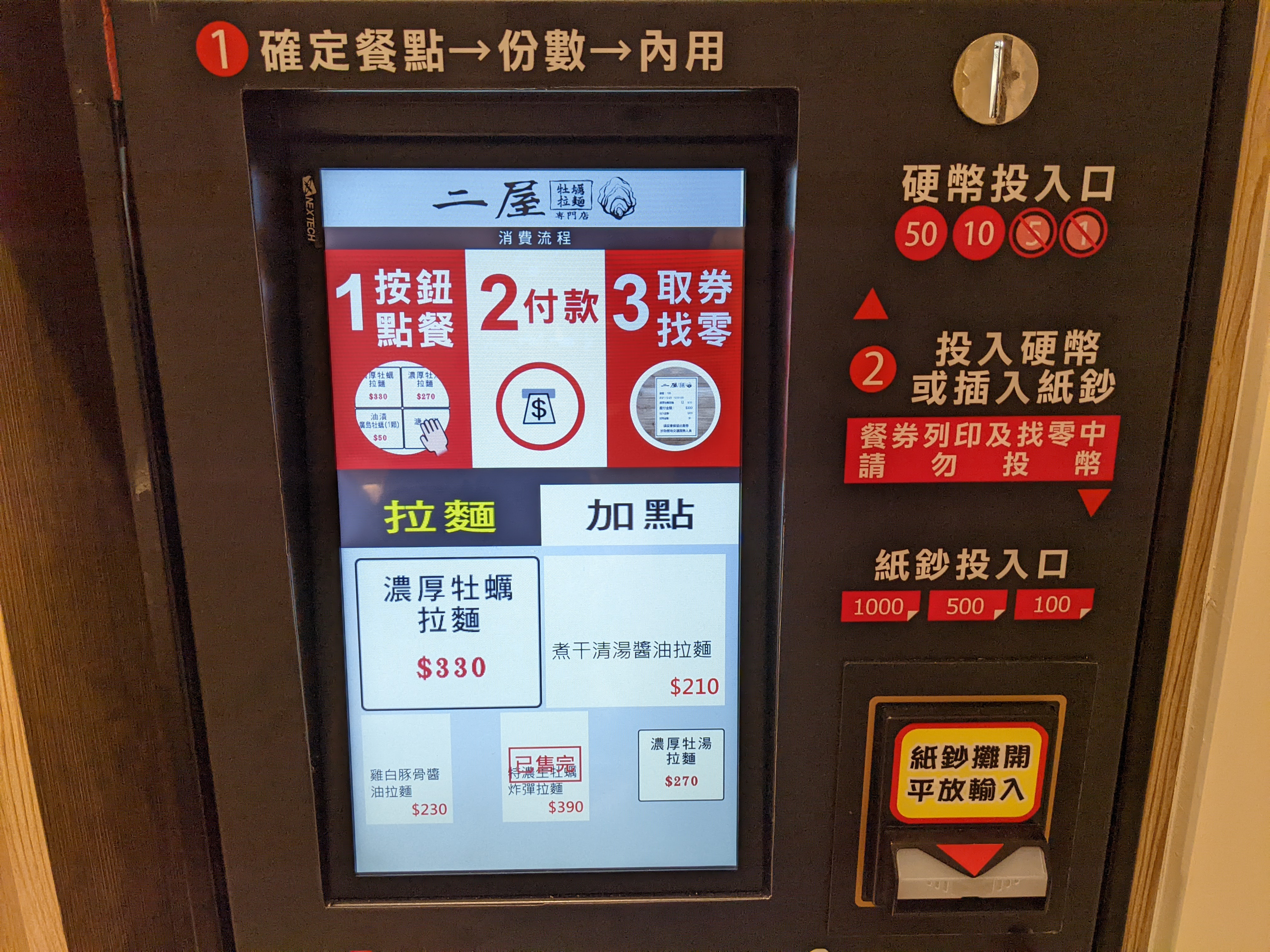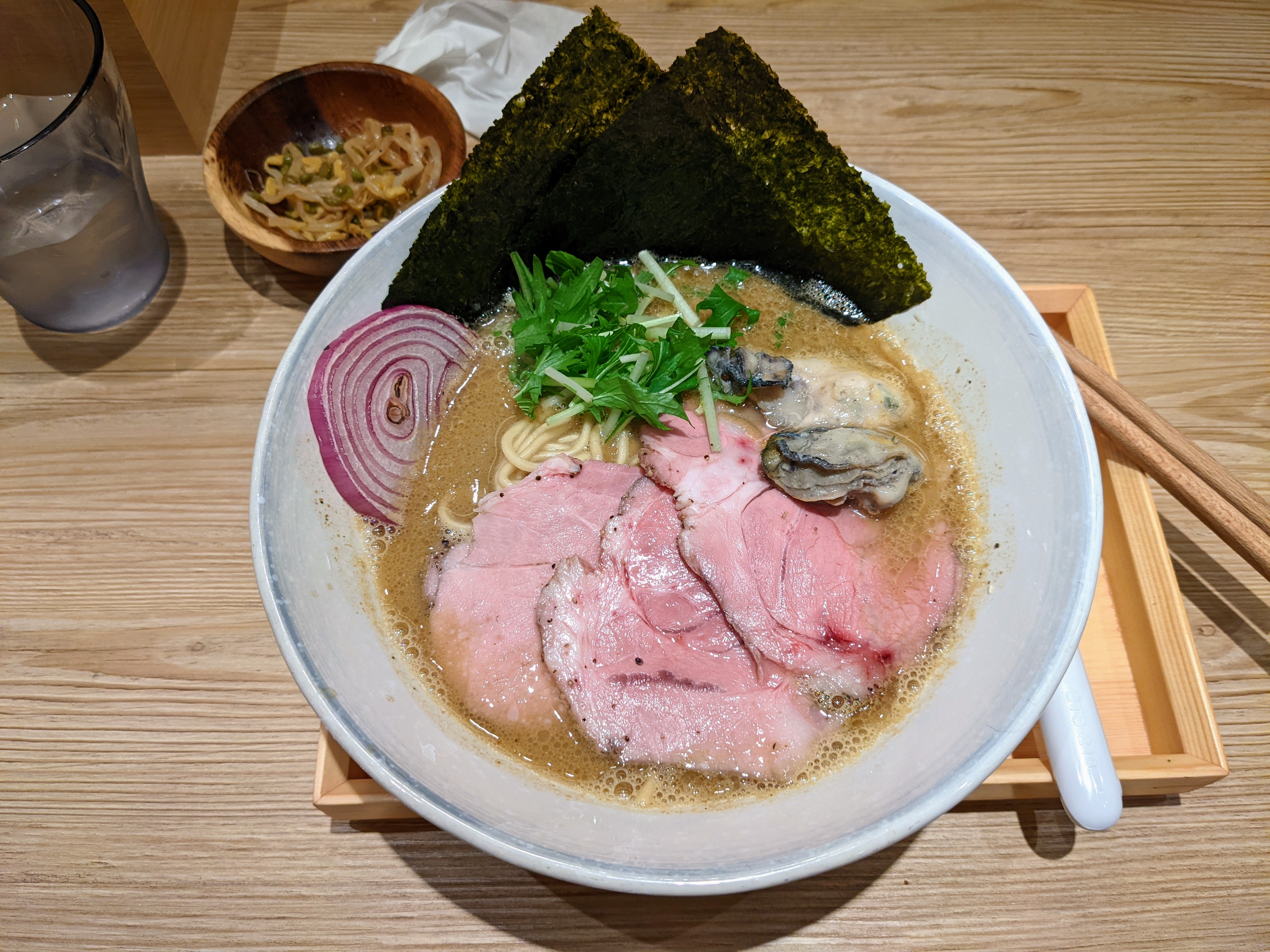 菜單非常簡單,分別有三種湯底醬油、雞白豚骨、牡蠣,我當然選擇了濃厚牡蠣拉麵,至於同行的友人則選擇了雞白豚骨。