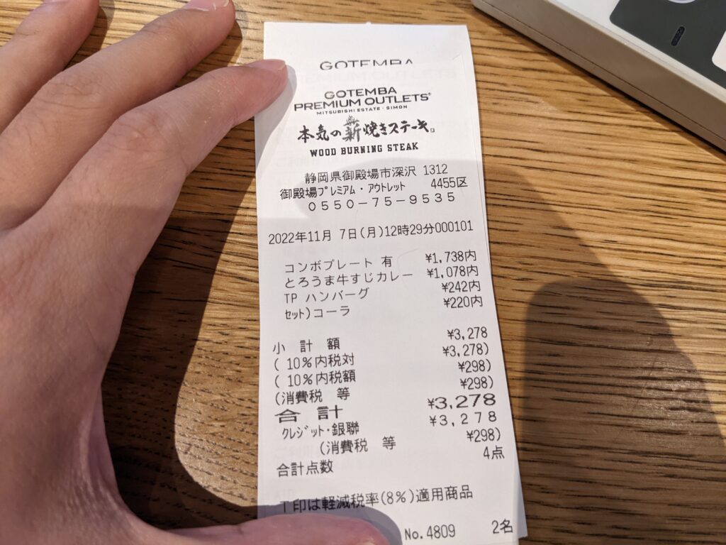 御殿場PREMIUM OUTLETS逛著逛著就到了中午吃飯時間,本來想吃炭焼きレストランさわやか,但是排隊真的太長了,只好旁邊搭手扶梯上二樓美食廣場覓食,看到這間本気の薪焼きステーキ感覺很美味就來吃了,結果真的蠻不錯吃。不過如果大家有去的話不妨先看一下炭焼きレストランさわやか有沒有在排隊,因為Google評分很高,一定也是好吃。