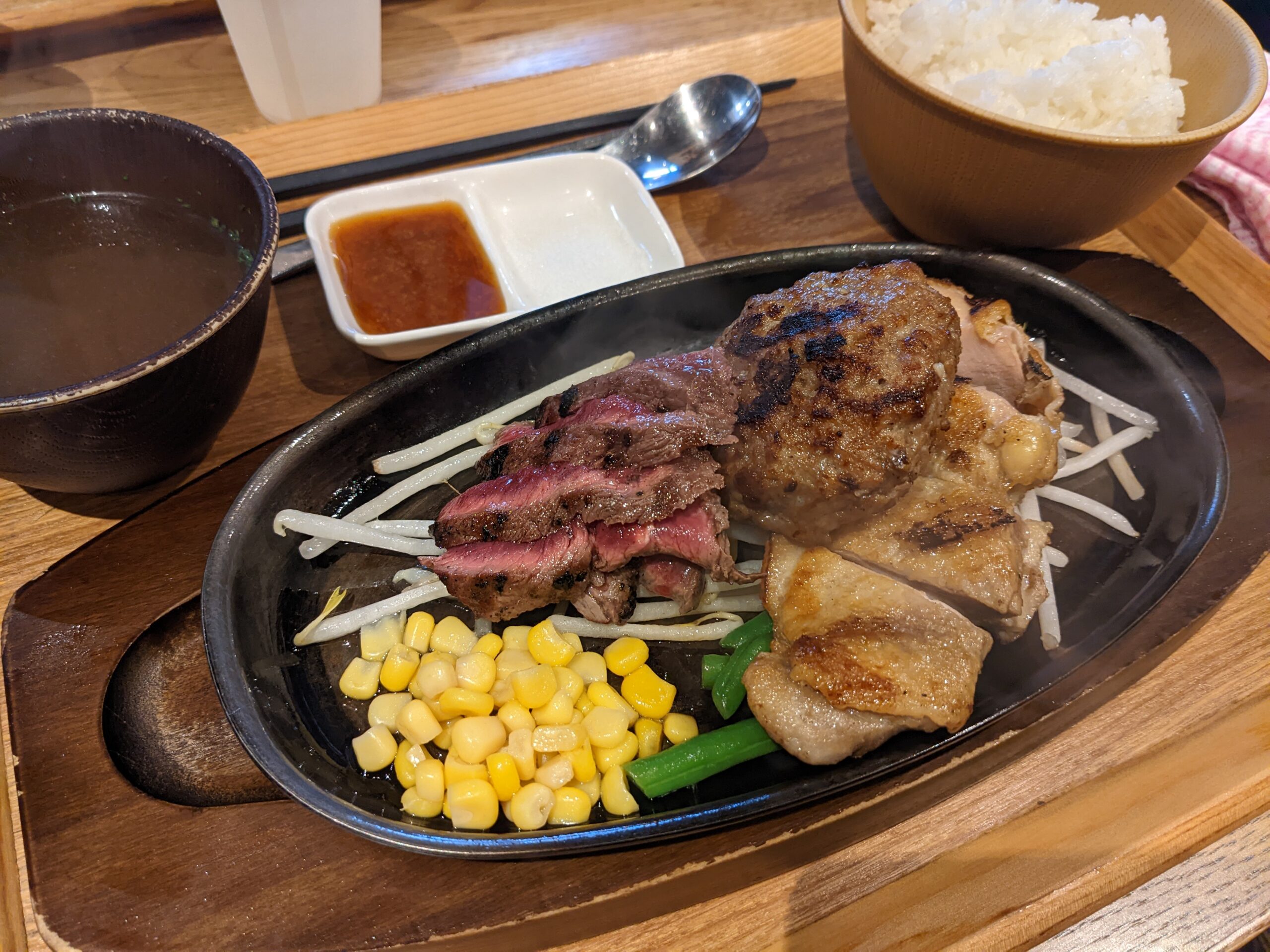 御殿場PREMIUM OUTLETS逛著逛著就到了中午吃飯時間,本來想吃炭焼きレストランさわやか,但是排隊真的太長了,只好旁邊搭手扶梯上二樓美食廣場覓食,看到這間本気の薪焼きステーキ感覺很美味就來吃了,結果真的蠻不錯吃。不過如果大家有去的話不妨先看一下炭焼きレストランさわやか有沒有在排隊,因為Google評分很高,一定也是好吃。