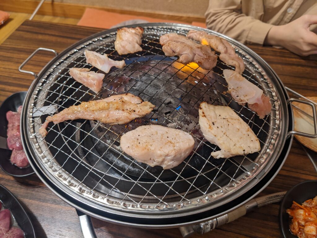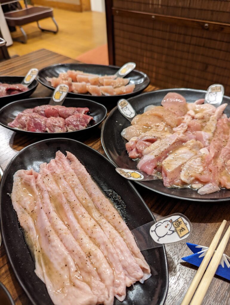 會有人說燒肉怎麼可以沒有牛肉,來日本不是就是要吃和牛嗎~~?的確和牛的油花是比較好吃,但是也會比較貴,點的時候都要小心自己的荷包,但如果來這裡的話就不用擔心這件事情,而且多吃點白肉比較健康哦~