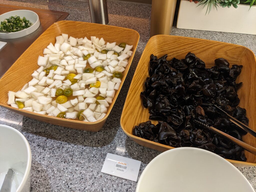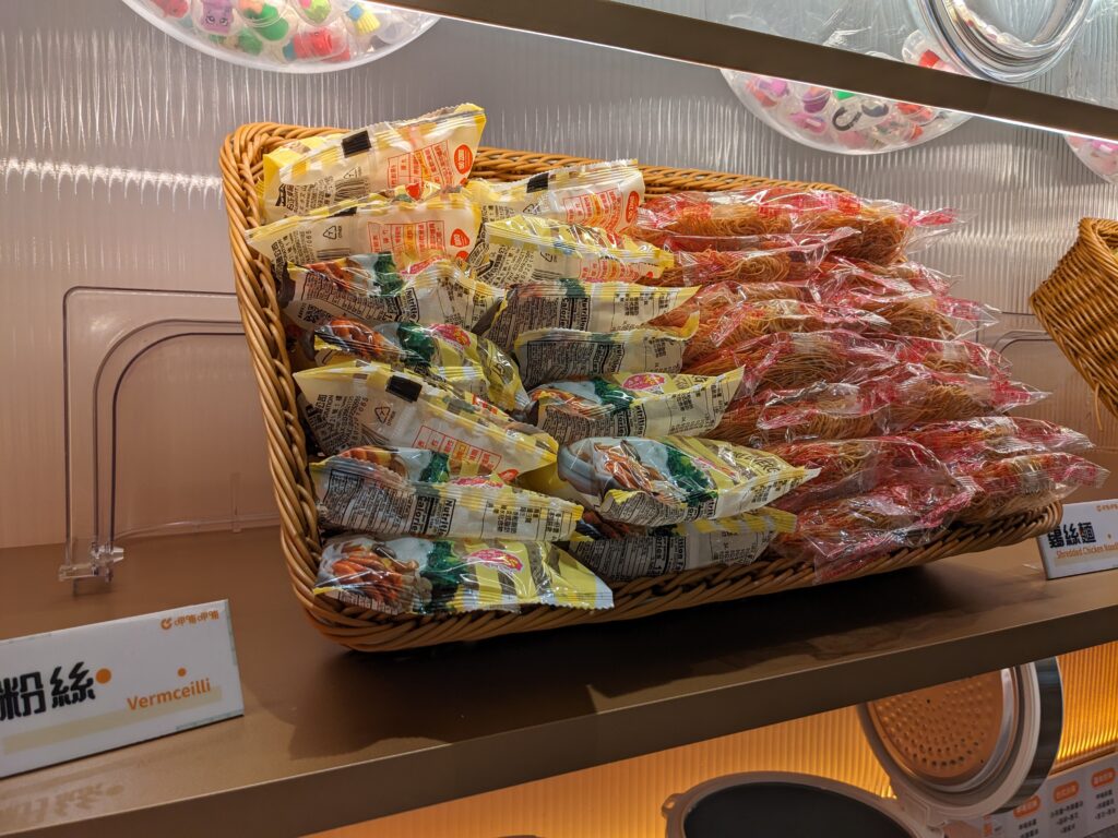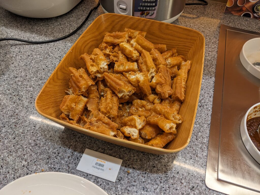 自助吧也很厲害,主食方面不是常看到的烏龍麵或王子麵,都是一些市面上比較不常見的麵,另外還有咖哩飯跟兩種小菜,味道都不馬虎,最最最重要的是,老油條竟然是無限供應的!!可以無限加在麻辣鍋裡真的超幸福~