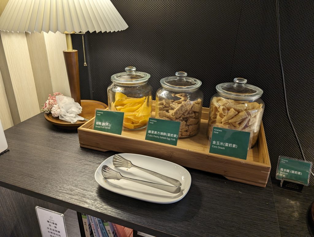 一進飯店就看到上面這一堆點心,飯店人員說這些都可以免費拿取!!難怪我看入住的小孩每個人手都拿兩碗加一堆餅乾,整個瘋掉很開心狂吃XD,另外接待人員服務也很好,看我們是外地來的還介紹周邊有什麼景點跟美食。