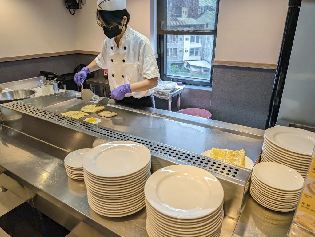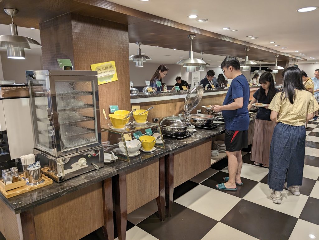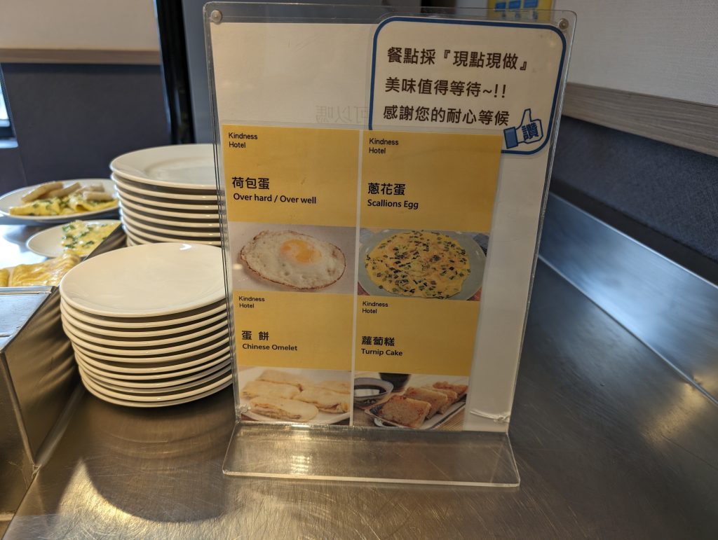 早餐的選擇很多,中式沙拉西式包子那些都有,比較有興趣的是這個現點現做的蛋餅、蘿蔔糕、荷包蛋,因為我平常早餐就是吃這些,我就全部都點了一份,然後拿杯牛奶跟拿鐵吃完就飽了XD,算是省下了早餐錢~