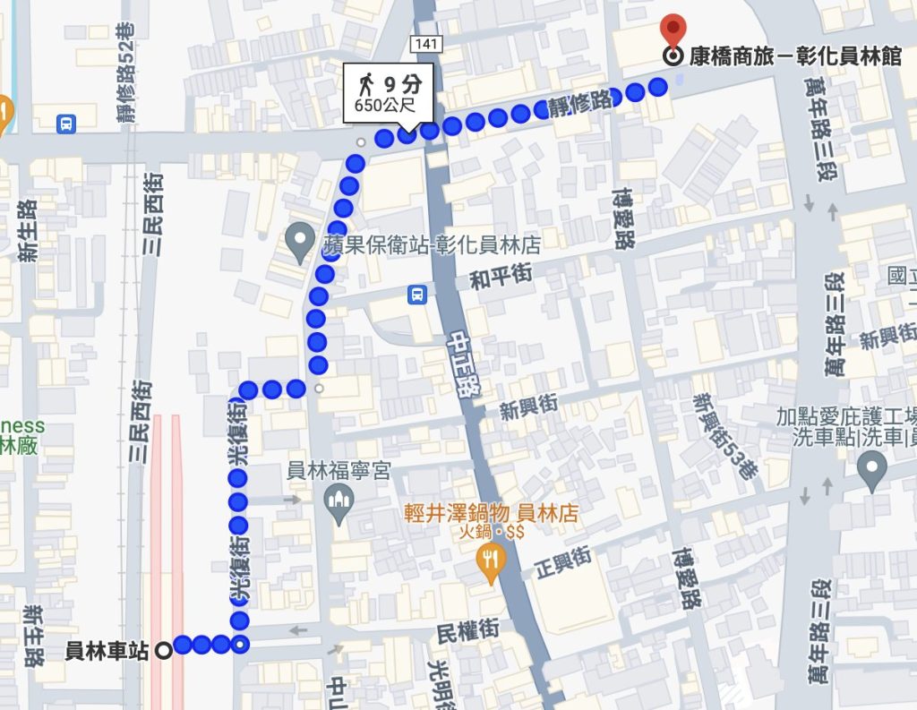這輩子還沒去過員林,就想說好好住一晚來體驗這邊的生活美食以及風情,上網找了這間離員林車站不遠的康橋商旅,周邊吃的喝的有很多,一晚價格不算太貴~