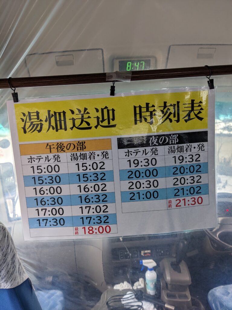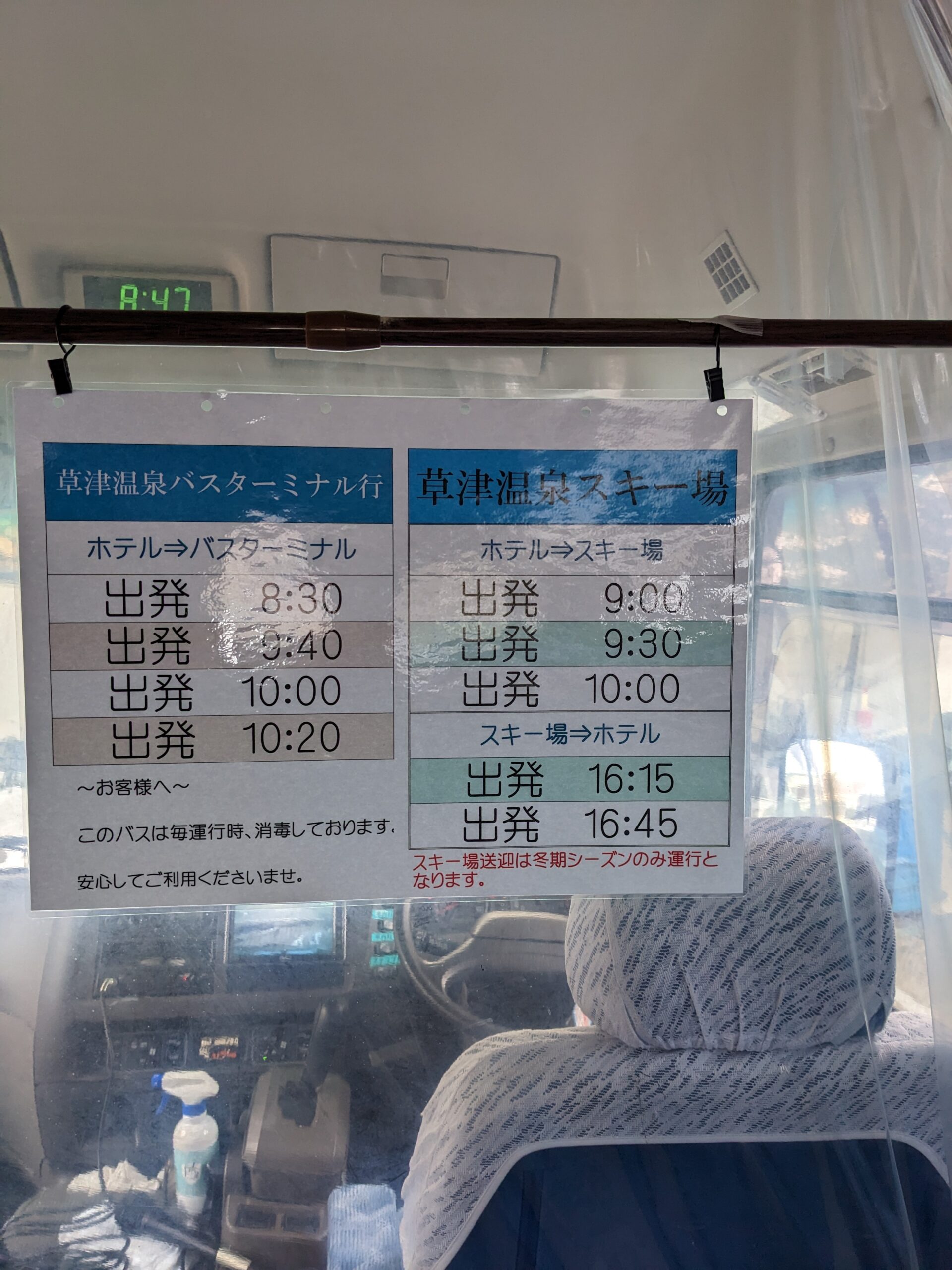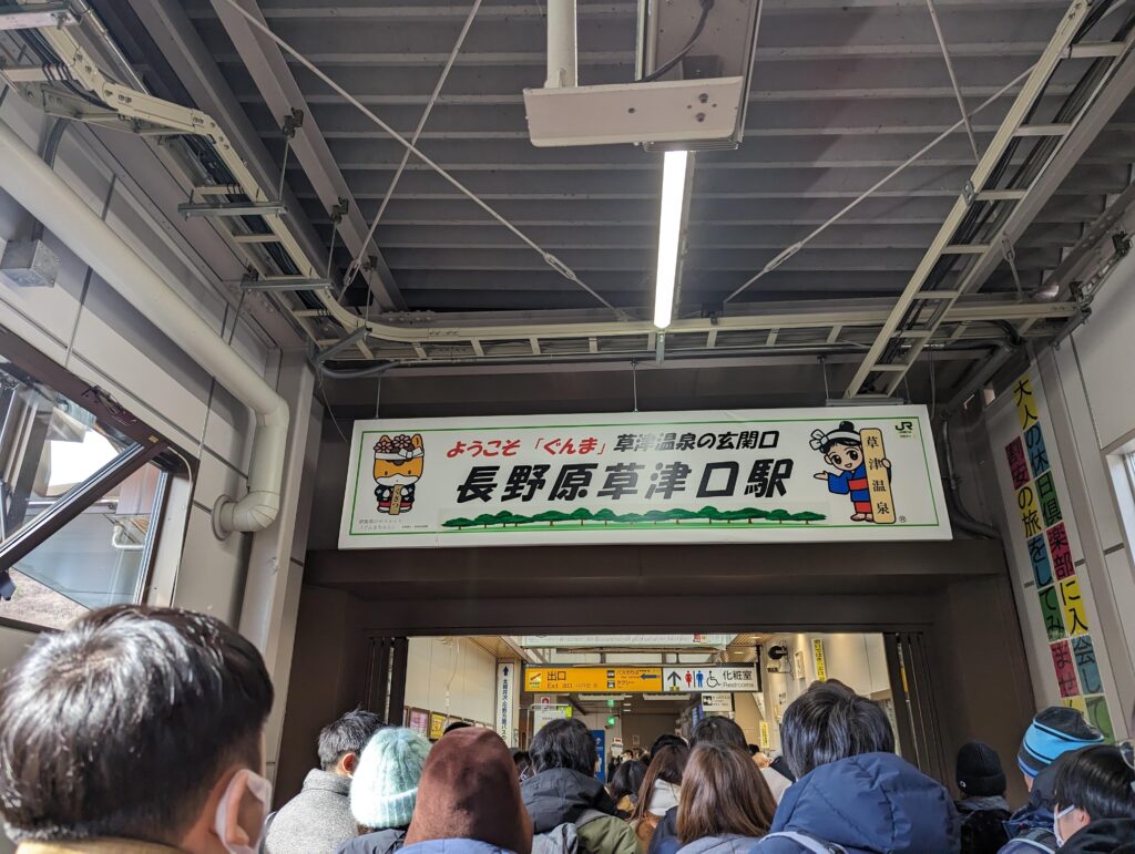 搭乘的時間非常久,目標是到長野原草津口轉乘巴士,到的時候不用擔心找不到巴士站,因為幾乎所有到長野原草津口的人都是要去草津溫泉,跟著人群走就行了。巴士是大台的那種,可以把行李箱放在巴士下,記得出示JR PASS就可以搭車囉。