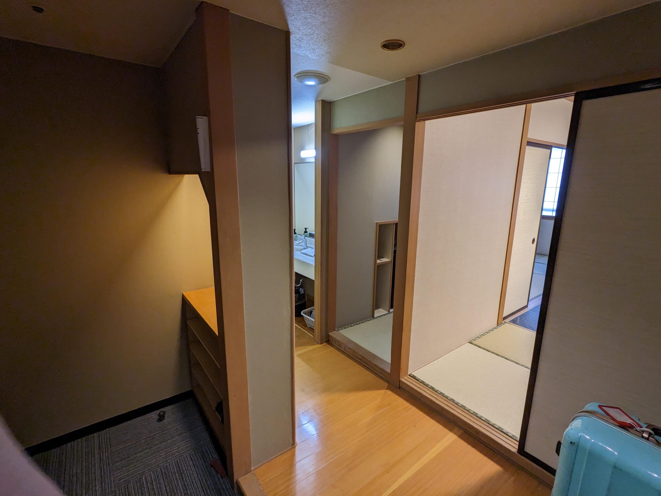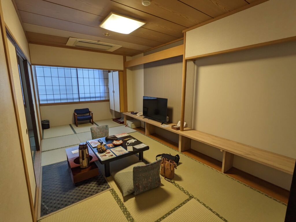一離開東京房間就大了許多XD,我非常喜歡睡這種日式榻榻米,不知道為什麼都特別好睡,睡得特別熟可以完全掃除我日本旅行的疲勞,但這也反應在價格上,通常日式房間會現代房間還貴。另外這個房間沒有附溫泉,要泡溫泉的話就要去大眾池,建議大家至少都去泡一次,非常舒服也非常大哦~