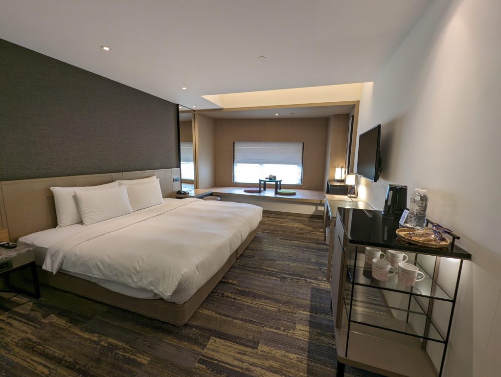 一進房間就會發現非常日式,因為這剛好是我們住的第三間飯店,剛好可以比較,真的知道什麼是一分錢一分貨,房間非常大又乾淨舒適,我們兩個非常喜歡。另外也知道為什麼這麼難訂,因為飯店不高,一層又只有幾間房間而已,很快就被人訂完了。