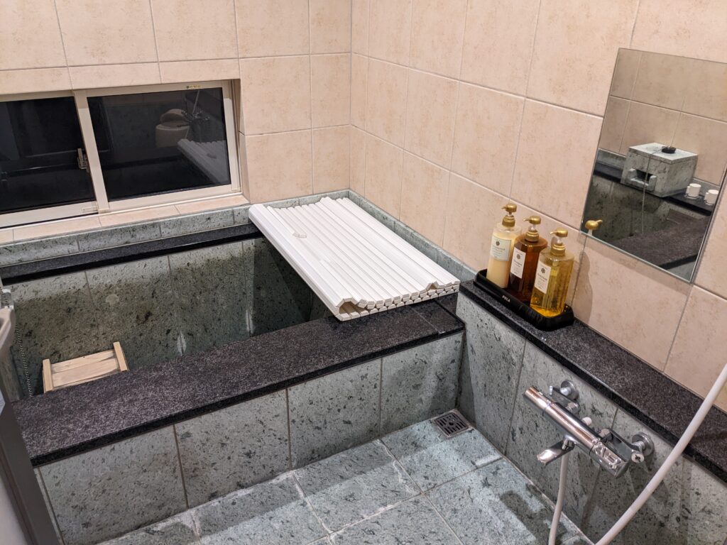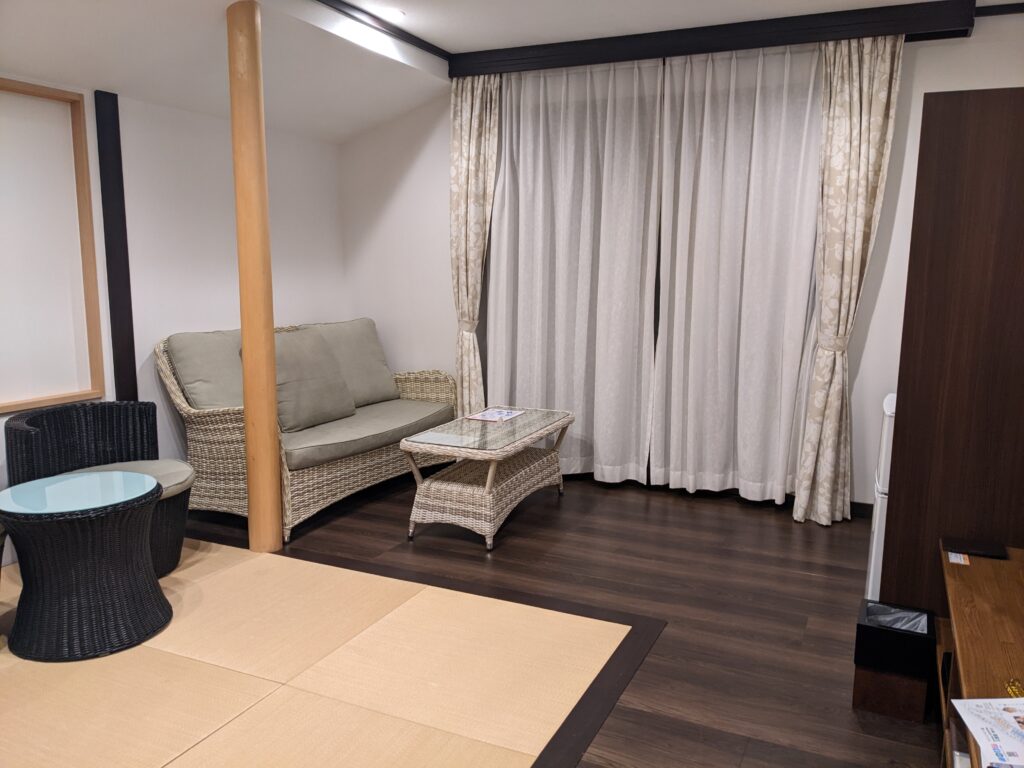 這邊的房間都是一樓整層的房型,空間非常的大,還有溫泉可以泡,我覺得以這樣的空間兩個人很舒適了~