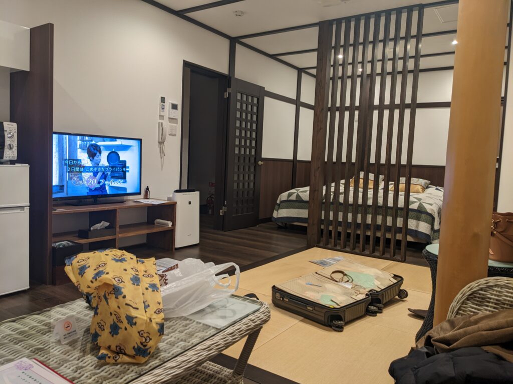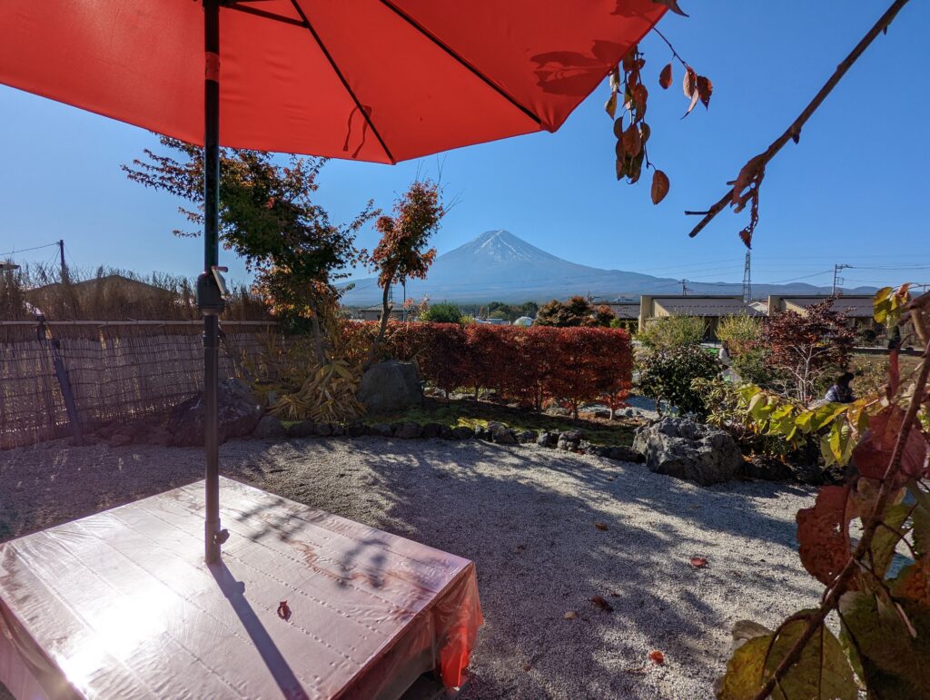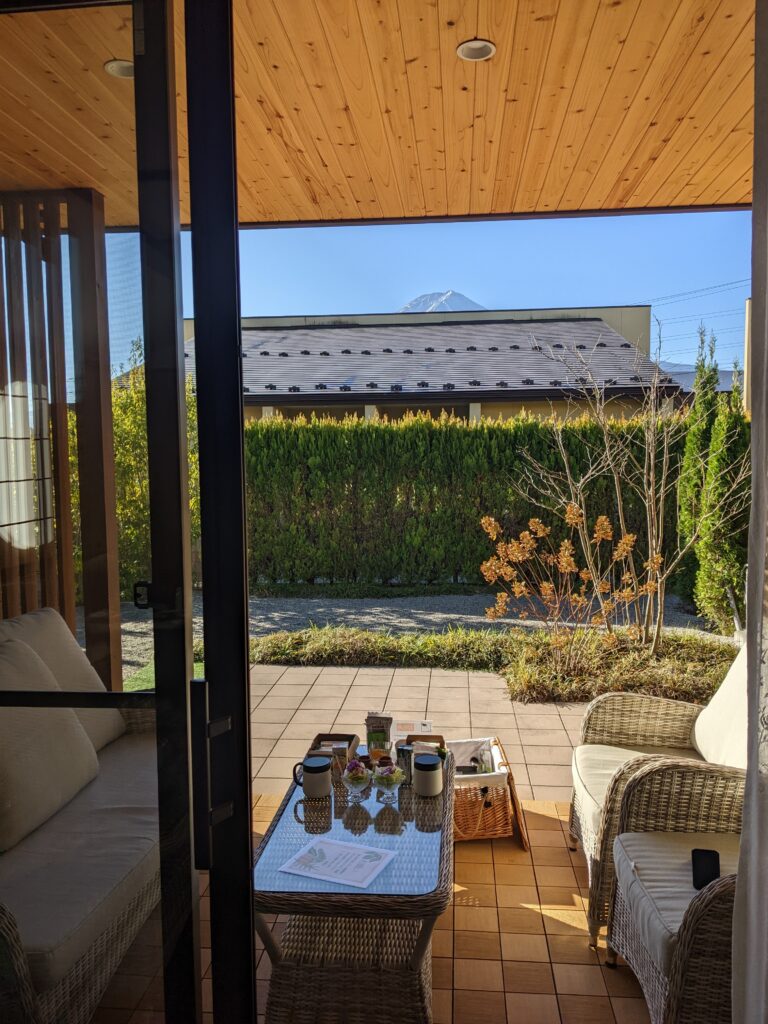 庭院這個方向可以看得到富士山,不過被前面的房間擋住了,只能看得到富士山的頭頂QQ,其實我本來是想要前面的房間,完全不會被擋住,但也許是因為我到的時間比較晚吧,所以才拿到了這個房間,如果想要不會被擋住的房間的話,建議用訊息跟老闆說看看可不可以保留起來。